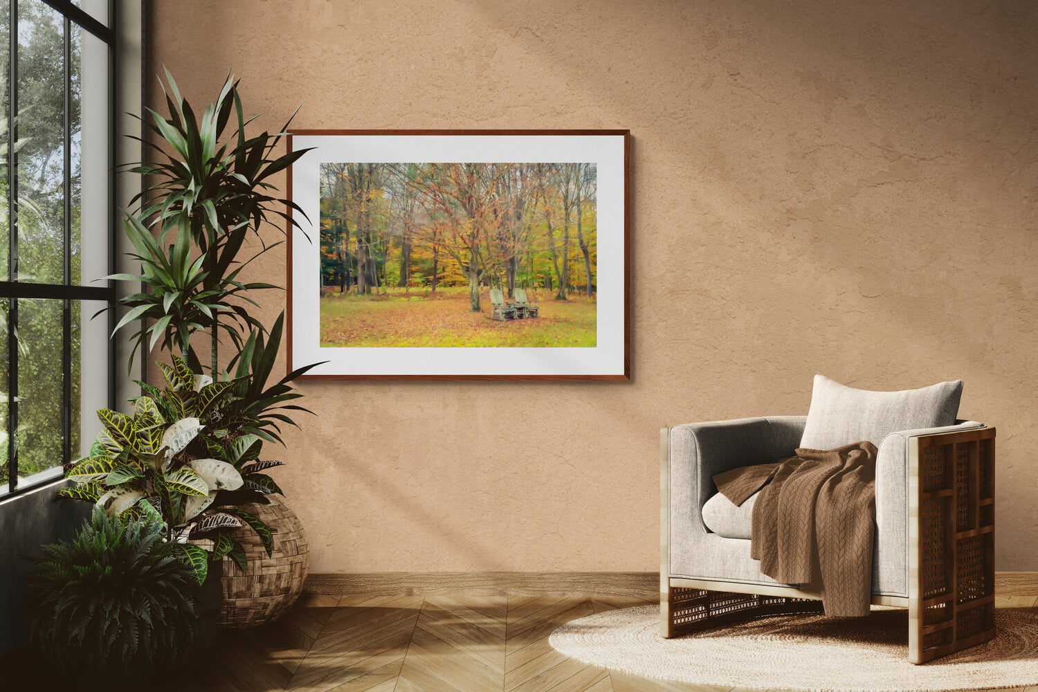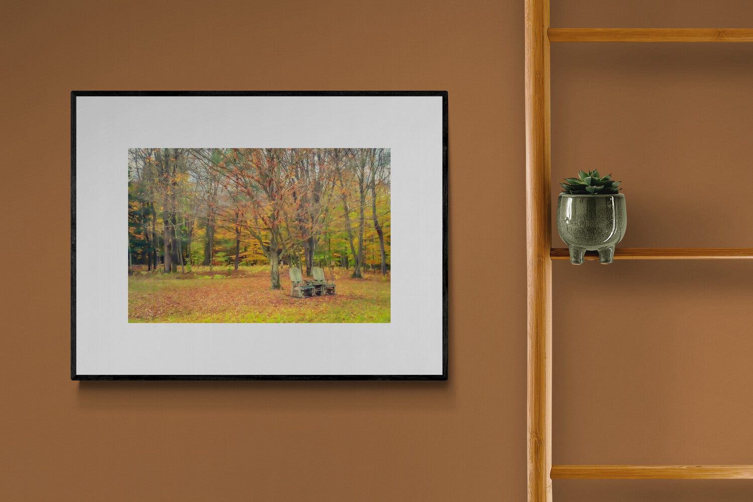 Finished as a sublime watercolor landscape, Death of Autumn in Bethel was taken behind the farmhouse in Bethel, NY where my wife was raised by her grandparents as a young girl. Back then, they had no running water in the house -- just a hand-pumped well in the front yard; the water from it ran cold and clear all year round. The trees behind the Adirondack chairs conceal the skeletal remains of the outhouse they used, a good fifty yards or so from the house. She still remembers picking wild berries with her grandmother in the morning cool, collecting them in their aprons, then taking them back to the house where, hours later, they would wind up -- sweet and tart and redolent -- in one of her grandmother's pies, casting their perfumes out across the entire yard and down the road.